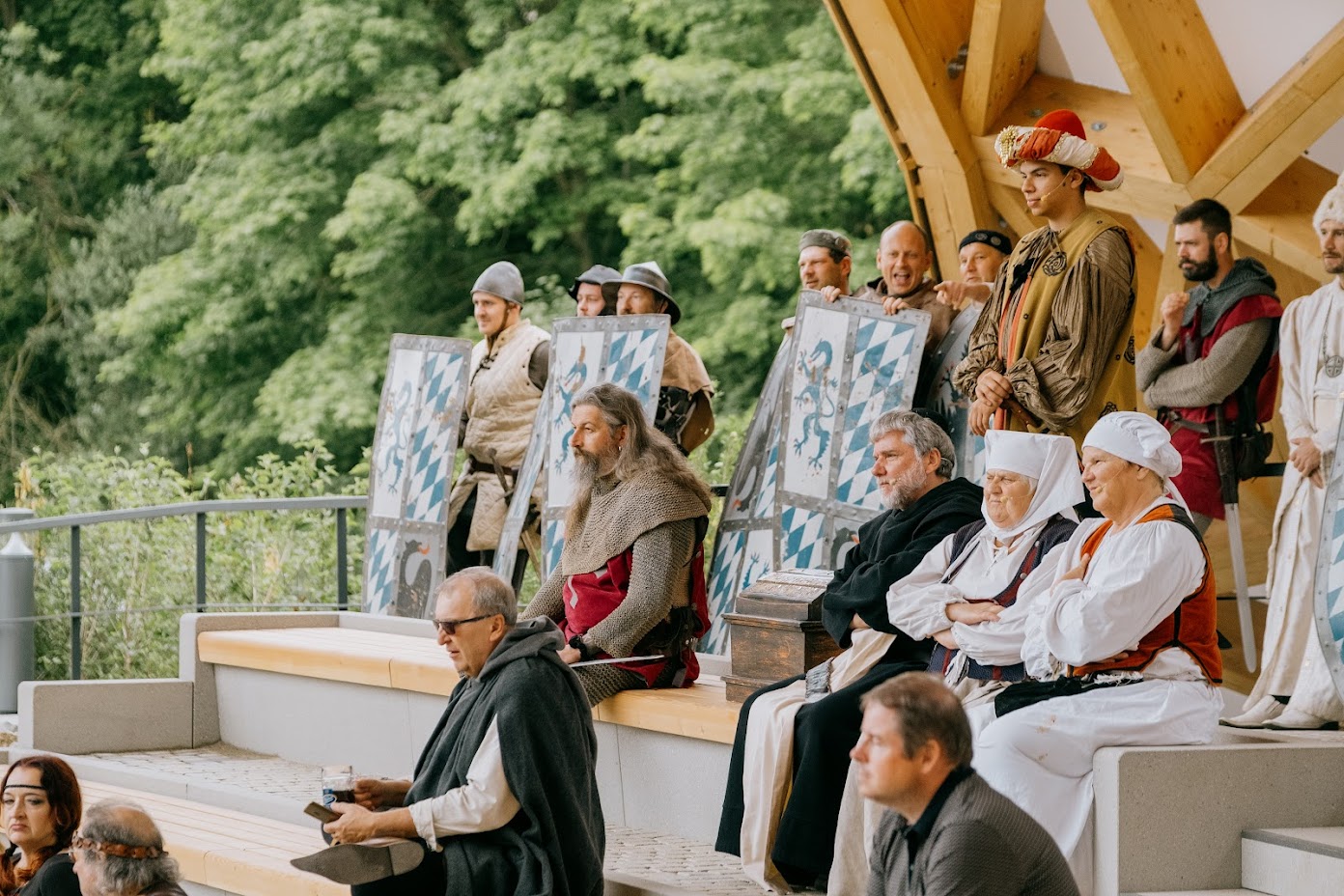 Der kulturelle Teil des Abends schlug den Bogen von der historischen Teilung durch den Eisernen Vorhang bis zur heutigen Rolle der Region als Modell für europäische Zusammenarbeit. Das Theaterstück „Hubert!“ des tschechischen Ensembles Geisslers Hofkomödianten thematisierte Nachhaltigkeit im Grünen Band Europas. Musik, Theater und das Drachenstich-Ensemble machten Geschichte lebendig und zeigten, wie Tradition und Moderne sich gegenseitig beflügeln.