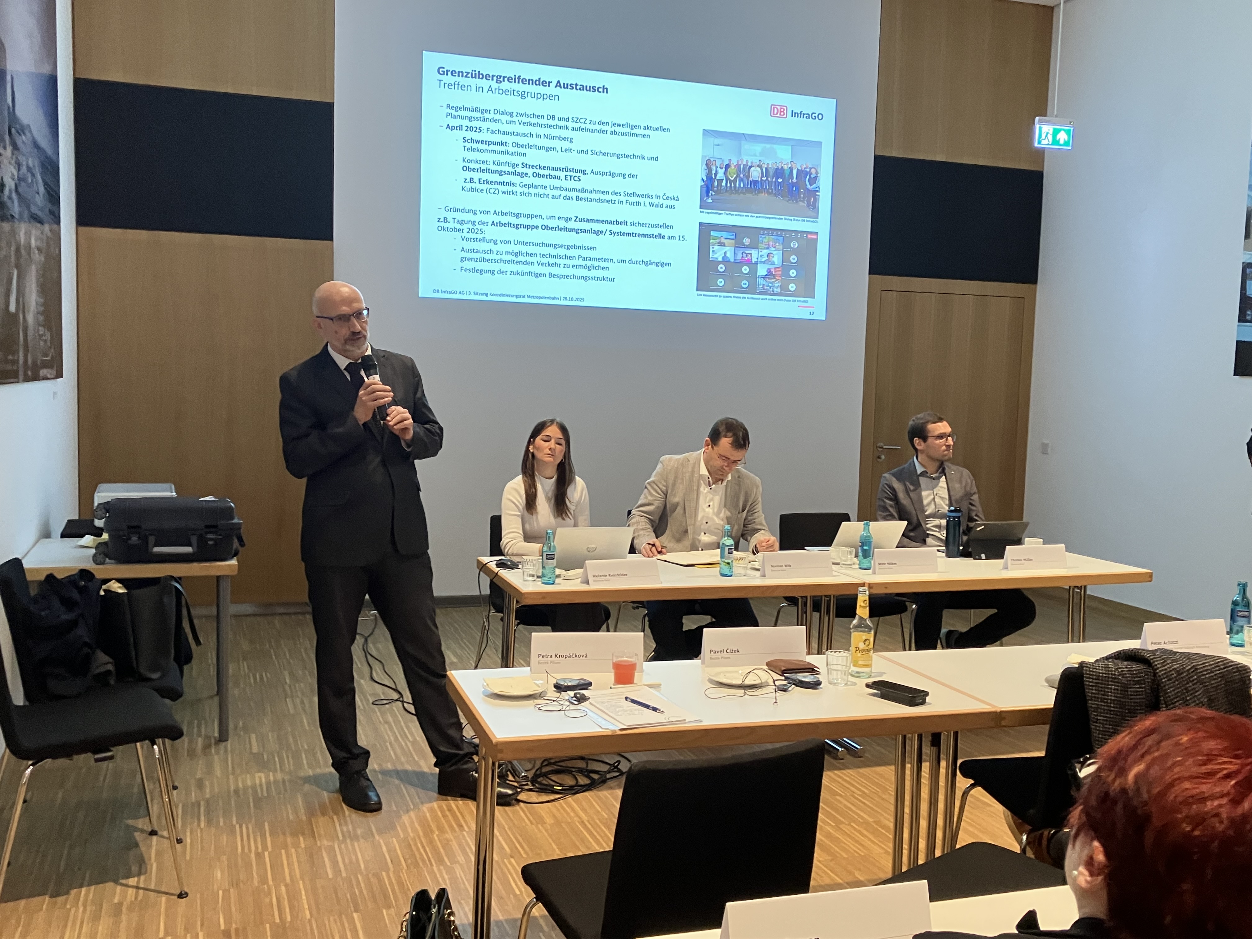 Ein Highlight war der Beitrag von Pavel Čížek, dem stellvertretenden Regionspräsident der Region Pilsen für Bereich Verkehr, der Einblicke in die Fortschritte auf der tschechischen Seite des Projekts gab. Der Ausbau und die Elektrifizierung der Strecke zwischen Pilsen und Domažlice, nahe der deutschen Grenze, ist in drei Bauabschnitte aufgeteilt - dort soll Anfang der 2030er Jahre gebaut werden. Dabei steht die tschechische Bahn ähnlich wie die DB InfraGO AG vor bürokratischen Herausforderungen, die es zu bewältigen gilt. Der offene Austausch zeigte einmal mehr, wie eng die Zusammenarbeit zwischen beiden Ländern funktioniert – ein zentraler Erfolgsfaktor für das internationale Bahnprojekt.